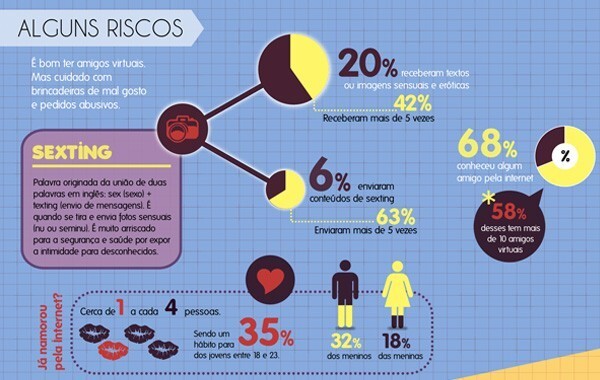 “Conforme a Internet passa a ocupar cada vez mais tempo e importância na vida dos adolescentes e jovens brasileiros, o namoro e as relações mais íntimas tendem a ocorrer também nos ambientes digitais, assim como ocorria com os bilhetes, cartas, telefonemas”, detalha o relatório da pesquisa. “Uma grande diferença a ser considerada atualmente é a amplitude do público potencial nos ambientes digitais e a replicabilidade das informações que rapidamente podem ser usadas sem o consentimento dos “proprietários”.