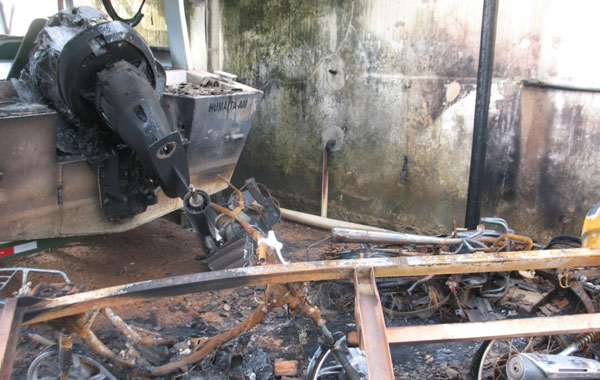 Cena 6. Na frente da sede da Funasa, em plena Avenida Transamazônica, uma Hilux queimada, continua no local. Na mesma noite de Natal, os incendiários saíram da sede da Funai e passaram na Casa de Apoio à Saúde Indígena (Casai). Dona Nirla Belfort dos Santos, vizinha da Casai, conta que quase queimaram o imóvel.“Tinha um que dizia: ‘Toca fogo’”. Diante dos apelos dos vizinhos, desistiram. Mas seguiram adiante para incendiar a sede da Secretaria Especial de Saúde Indígena (Sesai), que fica no mesmo terreno da Funasa. O prédio está em ruínas. “Uma amiga ia fazer cirurgia, não pode”, conta Naiara Santos, de 24 anos, Tenharim. “Os exames foram queimados. Há pessoas com câncer, sem atendimento”. Ao fundo do terreno, mais três carros queimados. Perto do muro, um carro da Funasa com um vidro quebrado e uma inscrição na lateral, feita com o dedo na poeira: “Índio”. O local do crime também não foi isolado para perícia. Na orla, no Terminal Hidroviário de Humaitá, mais um alvo: o barco N/M Kagwahiwa, responsável pelo atendimento às comunidades ribeirinhas. Queimado.