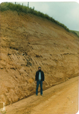 Foto de agosto de 1990 em área de afloramento de rochas sedimentares terciárias da Bacia de Taubaté, localizada no setor paulista do Vale do Paraíba. Fonte: arquivo pessoal de Heraldo Campos.